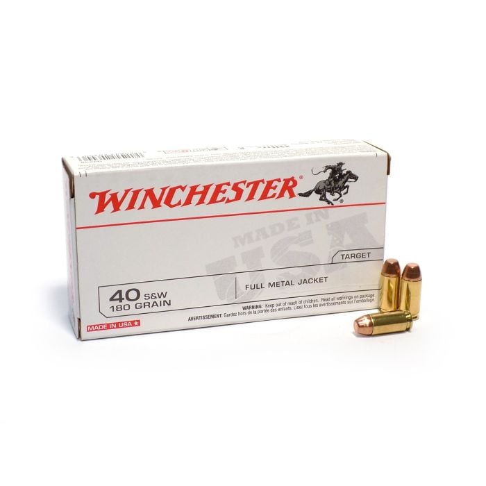 Winchester USA .40 S&W 180 Grain FMJ Ammo - 50 Rounds per Box