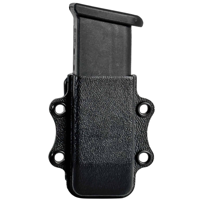 The Kydex Micro Compact Mag Carrier is crafted for those who prioritize comfort and efficiency in their daily carry setup. Perfect for inside-the-waistband use, this carrier fits most micro compact double stack magazines, providing a reliable solution for quick access to a spare magazine. Its heavy-duty polymer belt clip securely attaches to belts up to 1.5 inches wide, ensuring stability during movement. The design focuses on user comfort with smooth edges and rounded corners. This mag carrier is compatible with popular models like the Glock G43, Sig Sauer P365, and Springfield Hellcat, making it an essential accessory for preparedness and peace of mind.