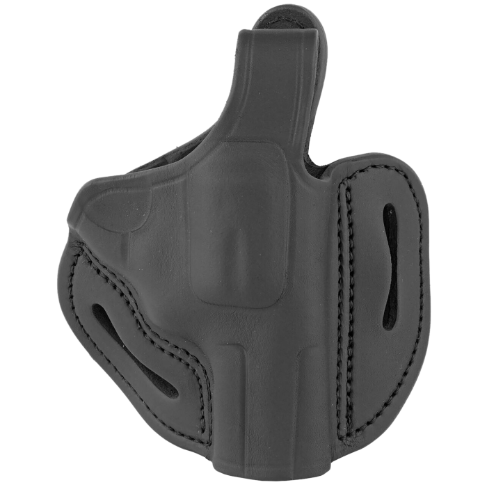 Crafted from premium leather in a sleek stealth black finish, this revolver holster by 1791 Gunleather offers a perfect blend of style and function. Designed for right-hand users, it accommodates K-frame revolvers, including models like the Smith & Wesson MP Bodyguard or Taurus 617, with barrels up to 3 inches. The belt slide mount ensures a secure fit on belts up to 1.75 inches wide, while the molded design provides an ideal fit for your firearm. Whether you're carrying a snubnose or a slightly larger model, this holster promises reliability and comfort.