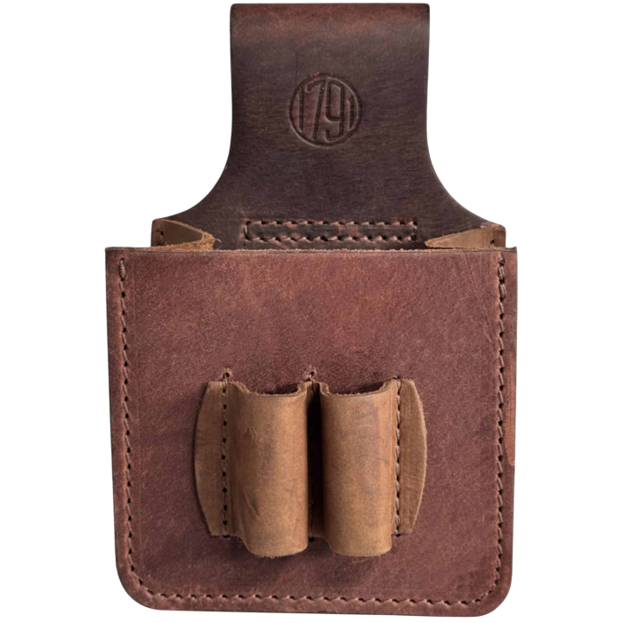 Introducing our handcrafted 1791 HUNT Shotshell Pouch, crafted from premium 100% American Heavy Native Steerhide leather for durability and style. The main compartment is perfectly sized to hold a full box of 25 shotshells, accommodating both 12-gauge 3-inch and 2¾-inch shells effortlessly. For quick reloads, two external speedload loops keep additional shells within easy reach. The generous 2¾-inch belt loop ensures compatibility with most belts, offering a secure and comfortable fit. Reinforced stitching ensures the pouch can withstand the demands of the outdoors.