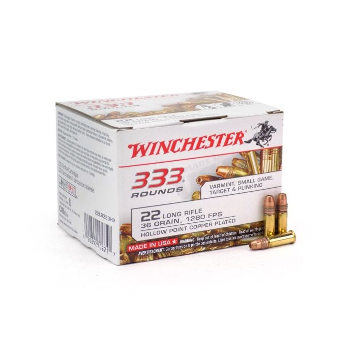Want better, more dependable knock-down power? Then load up with Winchester 22 Long Rifle for small game, hunting, plinking, and target shooting. Featuring Lubaloy copper plating that reduces fouling, 36 grain copper plated hollow point, and 1280 feet per second.