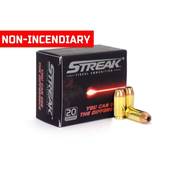 Ammo Incorporated STREAK .40 S&W 180 Grain Jacketed Hollow Point NON-FLAMMABLE Tracer style cartridge - 20 Round Box