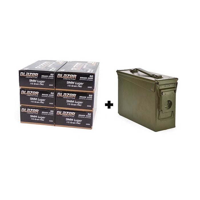 Blazer Brass 9mm 115 Gr FMJ (Range Bundle) w/ Heavy Duty Ammo Can