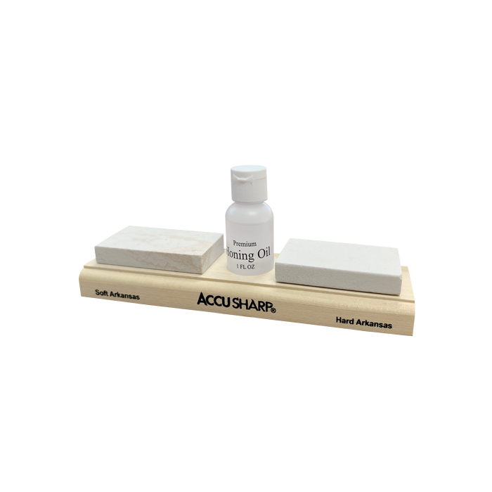 Elevate your knife sharpening routine with the AccuSharp Whetstone Combo Kit, designed for precision and convenience. This kit includes a fine and a medium Natural Arkansas Stone, ensuring a perfect edge every time. The included honing oil enhances the sharpening process, keeping your stones in top condition. Ideal for both novice and experienced users, this compact set keeps your stones and honing solution neatly organized, making it easy to maintain your blades with professional results at home. Experience the quality and craftsmanship of natural stone sharpening with this essential kit.