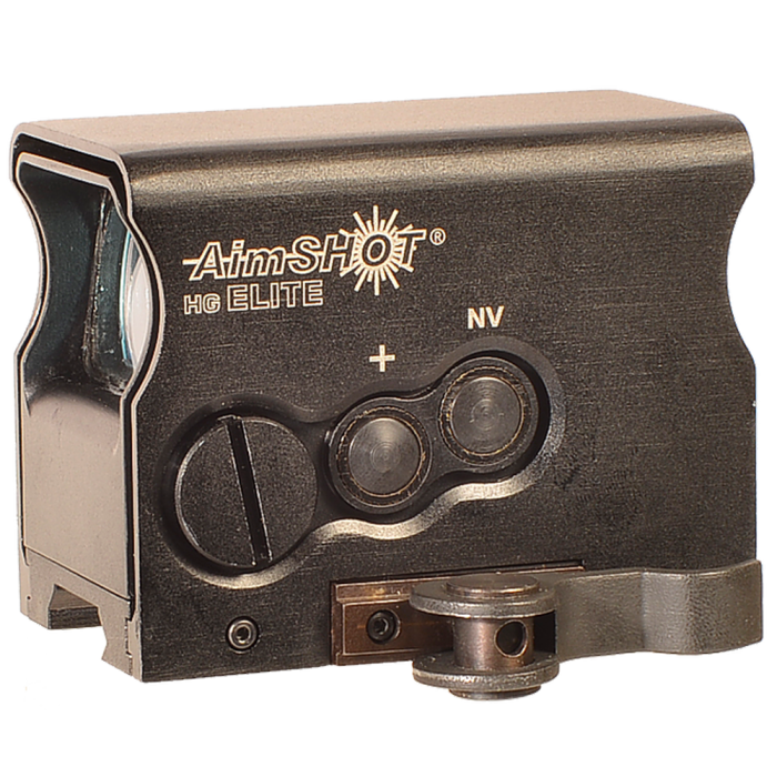 The Aimshot HG Elite Reflex Sight is designed for precision accuracy in any condition, offering a green crosshair reticle that is easy to acquire and customizable through multiple brightness settings for both visual spectrum and night vision use. With a 1x magnification and a 2 MOA dot size, this reflex sight ensures rapid target acquisition and exceptional performance, even at long ranges. It features a built-in inertia switch with auto shut-off after five minutes, automatic brightness control, true infrared capability, and fully adjustable windage and elevation. The integrated quick-release mount enhances ease of use, while the black hardcoat anodized finish provides durability. Engineered to be waterproof and shockproof, it weighs only 8.20 oz and measures 3.125 inches in length, making it a compact and lightweight option. Powered by a CR2 battery, the HG Elite is reliable and functional for all your shooting needs.
