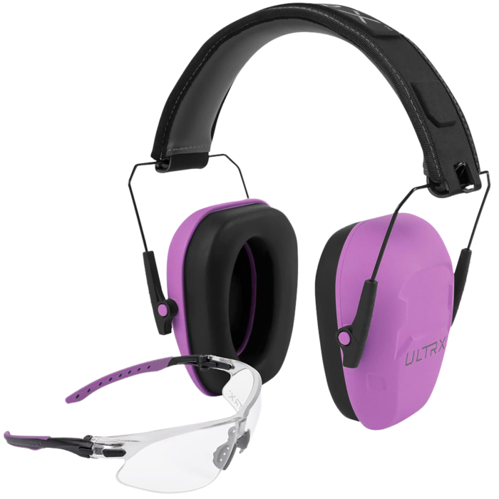 The Ultrx Shield Ear and Eye Protection Combo is the ultimate safety solution, combining high-quality protective eyewear and hearing protection in one convenient package. Designed in a stylish plum color, this set includes a pair of durable safety glasses and over-the-head earmuffs, offering both comfort and functionality. With a Noise Reduction Rating (NRR) of 23 dB, the earmuffs effectively shield your ears from harmful noise levels, making them ideal for construction sites, workshops, shooting ranges, and more. The ergonomic over-the-head design ensures a secure and comfortable fit for extended use. Whether you're a professional or a DIY enthusiast, this combo provides reliable, all-in-one protection without compromising on style or performance.