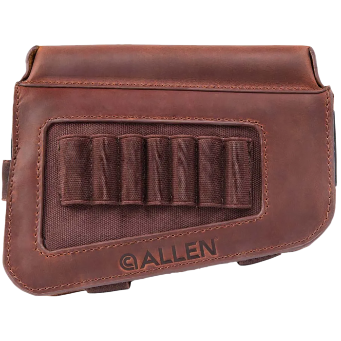 The Allen Leather Buttstock Carrier for Rifles with Cheek Piece combines style and functionality in a rugged design. Crafted from premium leather, the Westcliff model features a 7-round holder for convenient ammo storage, keeping essentials within easy reach during hunting or shooting sessions. The integrated cheek piece enhances comfort and stability, making it ideal for precision shooting. Designed for easy attachment, this leather buttstock carrier is built for durability and long-lasting use. Perfect for rifle enthusiasts looking for a practical and stylish accessory.