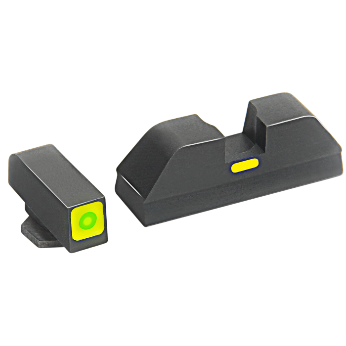The AmeriGlo CAP Sight Set for Glock pistols offers a tactical advantage with its high visibility design, ideal for personal defense scenarios. Engineered to fit Glock Gen 1-4 models in calibers 10mm, .45, and .357, this sight set features a green tritium front sight with a Lumigreen outline, ensuring quick target acquisition even under stress. The rear sight, crafted from durable black-painted steel, complements the front with a Lumigreen bar for enhanced alignment and accuracy. This combination of materials and colors provides an optimal sight picture in various lighting conditions, making it a reliable choice for shooters seeking precision and reliability.
