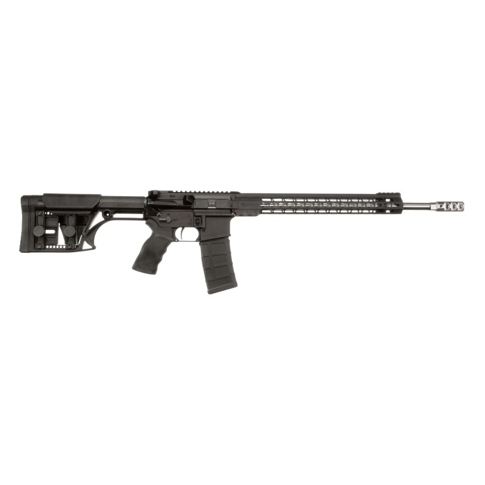 The Armalite M-15 223 Wylde is designed for those who demand precision and reliability. With an 18-inch match-grade stainless steel barrel, this semi-automatic rifle offers exceptional accuracy. Its 1:8 twist rate ensures optimal stabilization of a wide range of bullet weights. The rifle features a Timney single-stage trigger for a crisp and consistent pull, enhancing shooting performance. Equipped with an ambidextrous safety and a Raptor charging handle, it caters to both left and right-handed users. The 7075-T6 aluminum receiver is durable yet lightweight, contributing to the rifle's overall weight of 7.80 lbs. The adjustable Luth-AR MBA-1 stock provides customizable length of pull and cheek height for a comfortable shooting experience. Its black hardcoat anodized finish offers a sleek and durable appearance, while the Armalite tunable brake minimizes recoil for faster follow-up shots. With a capacity of 30+1 rounds and a Picatinny rail for mounting optics, this rifle is ready for both competitive and recreational use. The rifle-length gas system and free-floating handguard ensure smooth operation and improved accuracy.