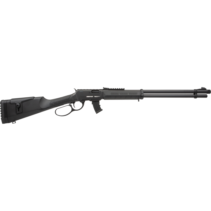 Equipped with two 10-round aluminum magazines, the TM22 offers a lever action mechanism and is chambered in 22 LR. Featuring a 20" fully-rifled, threaded barrel, this rifle has an overall length of 36 inches and a fixed stock. The flat face trigger ensures a smooth shooting experience, and the optic-ready sights provide customization options for enhanced accuracy. The black stock finish adds a sleek look to this high-performance firearm.