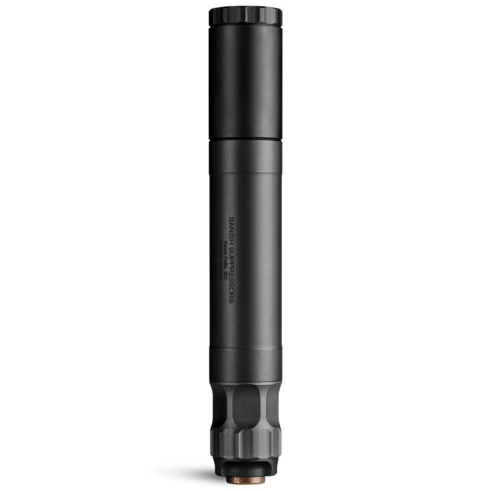 The BANISH 45 Multi-Caliber Modular Suppressor delivers exceptional versatility with rimfire through .45 ACP compatibility and configurable length design. Built for multi-gun owners, this titanium body suppressor with aluminum baffles combines modularity with premium performance in a lightweight package.
