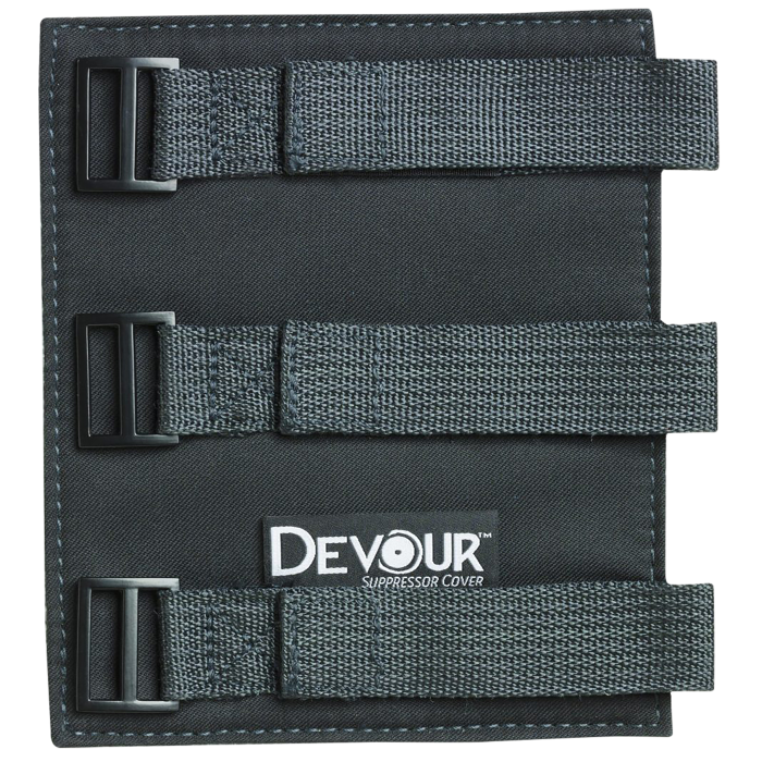 The Banish Devour 9" Suppressor Cover in black is the ultimate solution for protecting yourself and your gear from suppressor heat. Designed to mitigate optical mirage, it ensures clear and precise shooting. This cover not only shields your silencer from scratches and dings but also allows for easy installation or removal, even when the suppressor is hot, keeping you safe from burns. Featuring an industrial silica-coated, non-slip design with adjustable straps, it stays securely in place during use. The carbon fiber felt is e-glass rated for 1800°F and made from noncombustible material, providing superior high-temperature protection. Built for reliability and comfort, this suppressor cover is a must-have for any shooter.