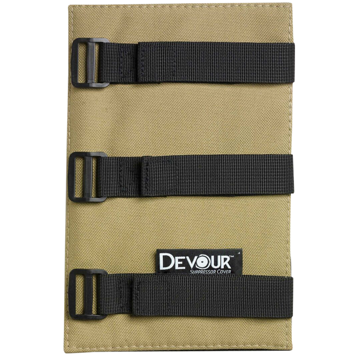 The Banish Devour 9" Tan Suppressor Cover is designed to provide superior heat protection for both you and your gear. Engineered to reduce optical mirage, it ensures clearer targeting during extended use. This durable cover also safeguards your suppressor from scratches and dings, making it ideal for everyday use. Featuring an industrial silica-coated, non-slip design with adjustable straps, it stays securely in place. The carbon fiber felt material is e-glass rated up to 1800°F, offering exceptional resistance to high temperatures. Easy to install and remove, even while the suppressor is still hot, this cover enhances safety and comfort during shooting sessions.