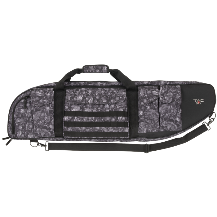 The Tac Six Battalion Delta Rifle Case in Reaper Camo is designed for tactical enthusiasts seeking both style and functionality. Its striking Reaper camo pattern complements the case's durable construction. The case includes three magazine pockets and three rows of MOLLE loops, providing ample space for accessories. Additionally, the rear zippered pockets offer extra storage for essential items. The easy-to-clean polyester lining ensures that maintenance is hassle-free, making this rifle case a practical choice for any tactical situation.