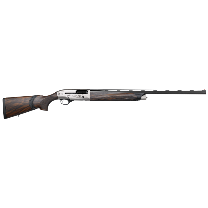 The a400 upland is a great combination of the latest technologies with a classic look, for all the hunters that are looking for the best shooting experience.It features an elegantly engraved nickel plated receiver with game scene engraving, classic beretta blue barrel, and select walnut stock with xtra grain finish and integral kick off mega recoil dampener.The design of the pistol grip and forend improves the gun comfort and enhances the overall look and slim new design.This model has a 26" barrel with three (3) obf-hp choke tubes.