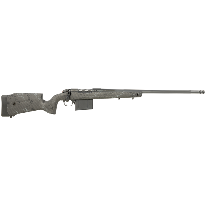 The B14 Crest is a high-performance ultralight rifle designed for long-distance and mountain hunting. Constructed on a lightweight and solid Monte Carlo carbon fiber stock, it leverages the most innovative technology to set a new standard in carbon stocks, making it the best choice for carbon rifles. Bergara has seamlessly combined this advanced stock with the B-14 action and their renowned barrels, resulting in a unique model that barely exceeds 3kg. The rifle is protected with Cerakote Sniper Grey to withstand unpredictable mountain weather conditions.