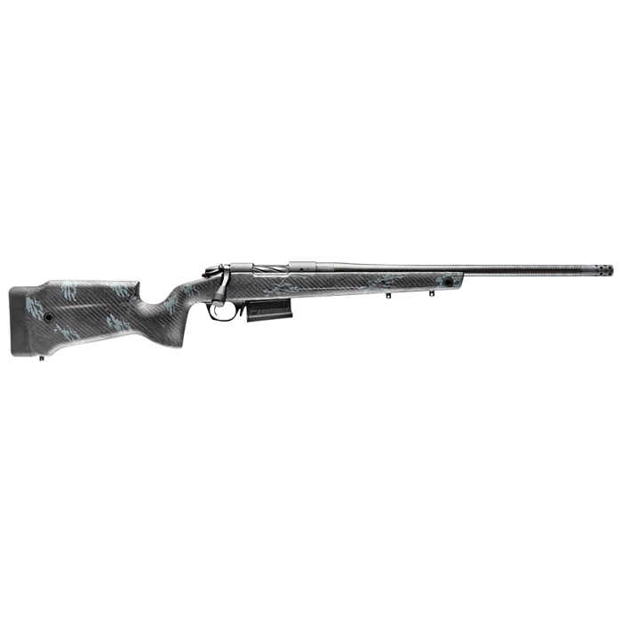 The B-14 Crest is meticulously designed for the highest standard of mountain hunting adventures, embodying a high-performance rifle that caters to the needs of the most demanding backcountry hunters. This exceptional firearm features a 100% carbon fiber stock with a distinctive black and gray sponge pattern, ensuring both durability and a sleek aesthetic. The fluted bolt and threaded barrel with an Omni muzzle brake enhance its functionality, while the Bergara Performance Trigger promises unparalleled precision.
