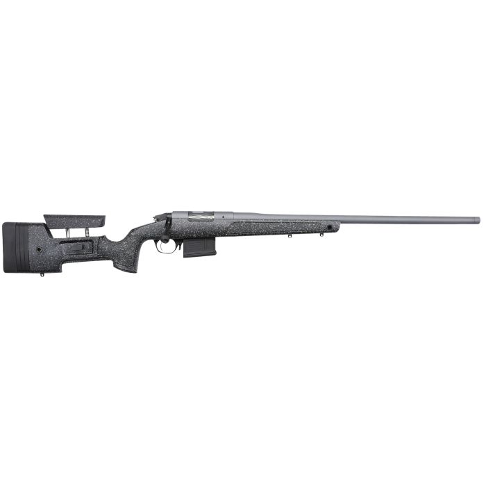 The HMR Pro Rifle stands out with its Bergara Premier Action, a meticulously designed two-lug system featuring a separate floating bolt head that ensures precise contact with the lug abutments in the action. The cone-shaped bolt nose guarantees smooth cartridge feeding, complemented by a spring-loaded sliding plate extractor. Crafted from stainless steel, the one-piece bolt body includes a pad at the rear for the threaded-in bolt handle. Enhanced durability and self-lubricating properties are achieved through the nitrided bolt head, non-rotating gas shield, bolt handle, and bolt shroud.