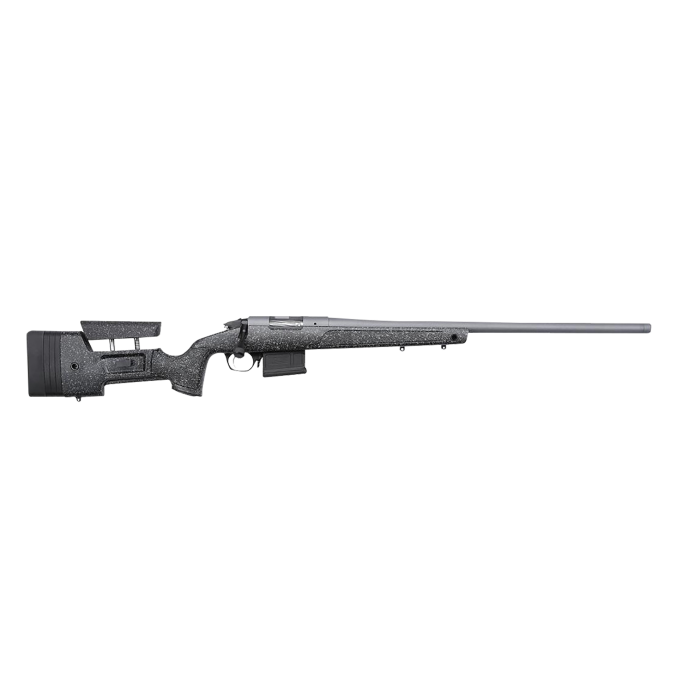 The Bergara Rifles Premier 300 PRC Bolt is a precision tool for serious shooting enthusiasts. It features a robust 26-inch barrel with a 1:9 twist, offering exceptional accuracy and performance. The rifle's Premier Action incorporates a two-lug system with a floating bolt head, ensuring optimal contact for enhanced consistency. Its stainless steel bolt body, complete with a nitrided bolt head and shroud, provides durability and smooth operation. The molded stock comes with a mini-chassis and adjustable LOP and cheek piece, ensuring comfort and customization for the shooter. With a capacity of 5+1, a threaded muzzle, and a sleek gray Cerakote metal finish, this rifle combines functionality and style. The TriggerTech trigger with Frictionless Release Technology enhances the shooting experience, while the two-position safety allows for secure handling. Ideal for right-handed users, this rifle is crafted to deliver precision and reliability in every shot.
