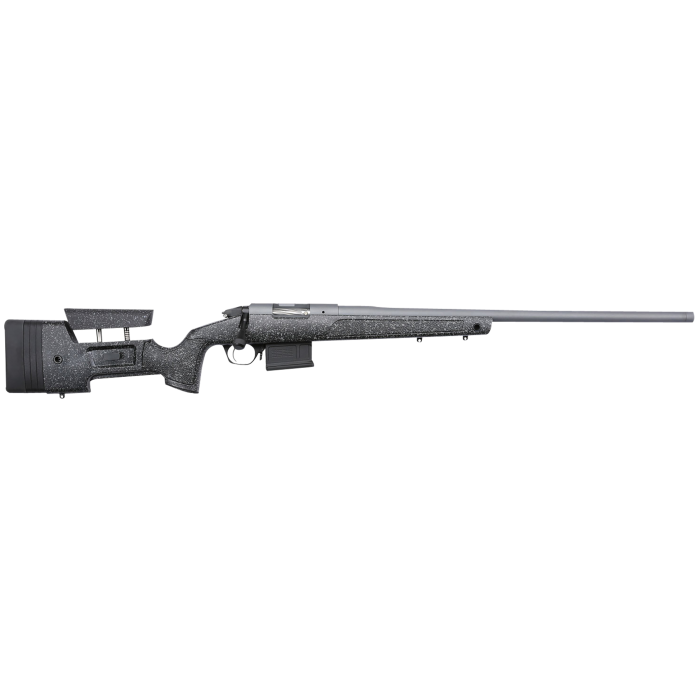 The Bergara Rifles Premier 308 Win Bolt Action Rifle is a meticulously crafted firearm designed for precision and reliability. Chambered in .308 Winchester, it features a 20-inch barrel with a 1:10 twist rate, ensuring excellent accuracy and performance. The rifle's action is bolstered by the Bergara Premier Action, incorporating a two-lug system with a separate floating bolt head for optimal contact and a cone-shaped bolt nose for smooth feeding. The stainless steel one-piece bolt body includes a nitrided bolt head, handle, and shroud, providing exceptional durability and self-lubricating properties. Equipped with a TriggerTech Frictionless Release Technology, the two-position safety is integrated into the trigger assembly, allowing the rifle to be unloaded while in a safe position. The stock is molded with a mini-chassis, featuring adjustable length of pull and cheek piece for a customized fit. With a sleek gray Cerakote finish and a threaded barrel compatible with Remington 700 style rings and bases, this rifle combines functionality with a modern aesthetic. The detachable magazine holds 5+1 rounds, making it a versatile choice for shooting enthusiasts.