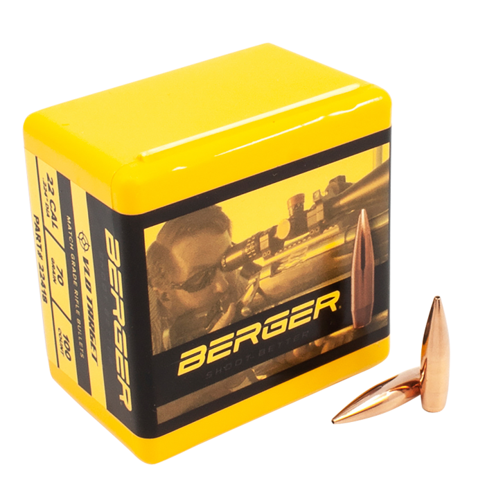 Berger 22 Caliber 70gr VLD Target Projectiles 100/Box