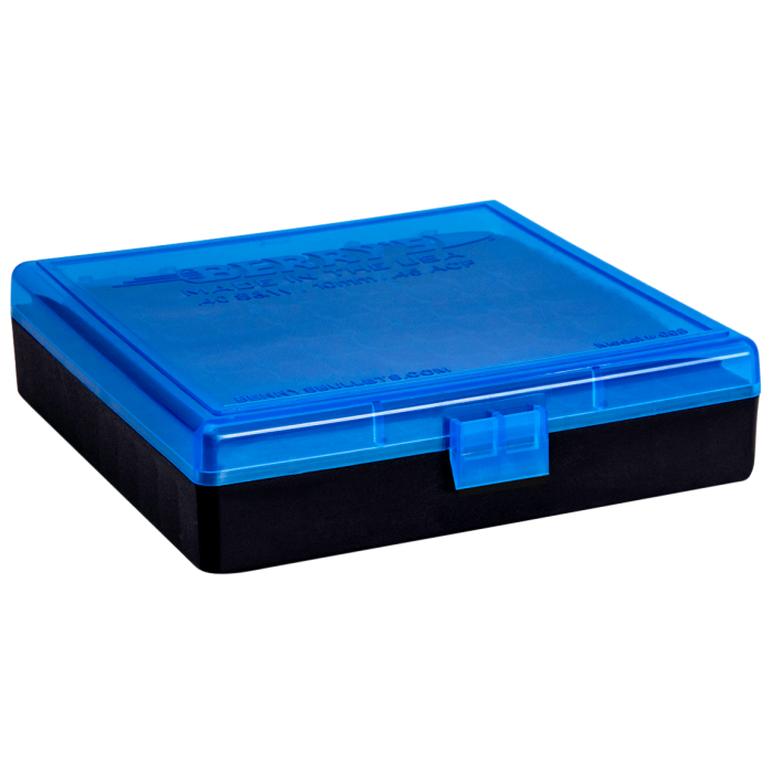 Crafted from high-impact polypropylene, this Berry's Ammo Box is designed for durability and reliability. With a capacity to hold 100 rounds, it offers ample space for 40SW and 45ACP ammunition. Its robust structure resists cracking, chipping, and warping, ensuring long-term use. The innovative flip-top design allows for secure storage and hassle-free, one-handed access. Measuring 1.27 inches in overall length and .48 inches in width, this box is also stackable, making it a practical choice for organized storage and transportation of your ammo collection.