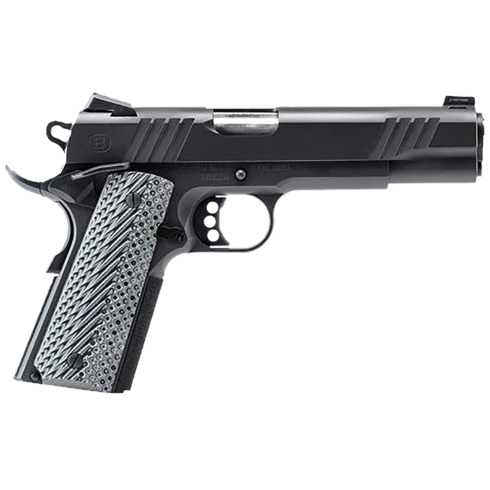 The Bersa B1911 Onyx is a masterful blend of classic design and modern enhancements, crafted for those who appreciate precision and reliability. This .45 ACP firearm stands out with its black stainless frame and 5-inch barrel, offering a commanding presence and superior performance. Featuring Gray VZ grips, it ensures a secure hold, while the serrated slide enhances handling. The ambidextrous thumb safety provides ease of use for all shooters, and the dovetailed tritium night sights guarantee accuracy in low light conditions. Experience the perfect synergy of tradition and innovation with the B1911 Onyx.
