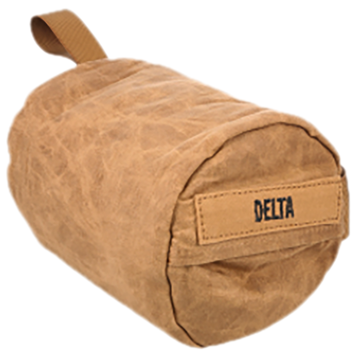 The SteadyShot Delta Large Wax Canvas Shooting Bag in tan is expertly crafted for shooters seeking precision and stability. Constructed from durable waxed canvas, it provides a strong yet flexible grip that aids in precise elevation control. Its cylindrical design ensures stability, while the lightweight polymer fill offers balanced support for both front and rear shooting positions. This versatile bag includes a zippered pocket for fill adjustment, a carabiner loop for easy attachment, and a large handle with a sling loop for quick repositioning. Measuring 8 x 6.5 inches and weighing just 1.75 lbs, it delivers reliable support without the added weight, making it an ideal choice for any shooting scenario.