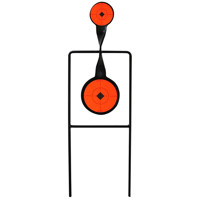 The Spinner Target is a high-quality shooting accessory designed for rimfire enthusiasts seeking a reliable and engaging practice tool. Constructed from durable AR500 steel, this target promises long-lasting performance and resilience against repeated impacts. The target features a distinctive bullseye illustration in striking black and orange, enhancing visibility and aiming precision. With its auto-resetting capability, shooters can enjoy continuous practice without the need for manual adjustments, while the motion impact enhancement adds an extra layer of challenge by providing visual feedback upon each successful hit. The target stands securely on its mounting, offering stability during use. Its compact size, with dimensions of 2.25 inches and 3.625 inches, makes it suitable for various shooting environments. This single-unit target is an excellent choice for those looking to improve their accuracy and technique with rimfire ammunition.