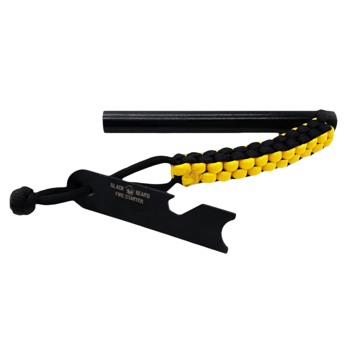 The Black Beard Ferro Rod throws a shower of sparks in any condition. A rugged and reliable fire starter for camping, hiking, or survival.