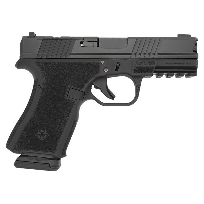 The Black Rain Ordnance Frontline 9mm stands out with its precision-crafted design and advanced features, inspired by the Glock 19 Gen3 platform. Its sleek black Cerakote finish ensures durability and a modern look, while the ergonomic grip with upgraded stippling provides superior handling. The 4-inch barrel and optic-ready serrated slide make it a top choice for quick target acquisition. Equipped with stainless steel retention pins and a beveled slide, this firearm offers enhanced performance and reliability. With a 15+1 capacity and included 15rd GL9 PMAG, it’s an ideal choice for both enthusiasts and professionals seeking a dependable sidearm.