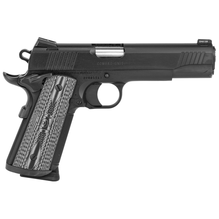 Experience precision and power with the Colt Combat Unit Government 45ACP. This robust firearm boasts a 5-inch barrel crafted from durable stainless steel, ensuring reliability in every shot. With an 8+1 capacity, it's designed for those who demand efficiency and accuracy. The matte black DLC finish on the frame offers a sleek and modern appearance, while the steel frame enhances durability. Featuring ambidextrous thumb and grip safety, this model caters to both right and left-handed users, providing ease of use and added security. The Novak front and rear sights deliver exceptional target acquisition, making it a favorite among enthusiasts. The black scalloped G10 grips not only enhance the aesthetic but also provide a firm hold, even in challenging conditions. Engineered with a serrated slide and an extended magwell, the Colt Combat Unit blends functionality with style, perfect for those who appreciate a high-performing, meticulously crafted firearm.