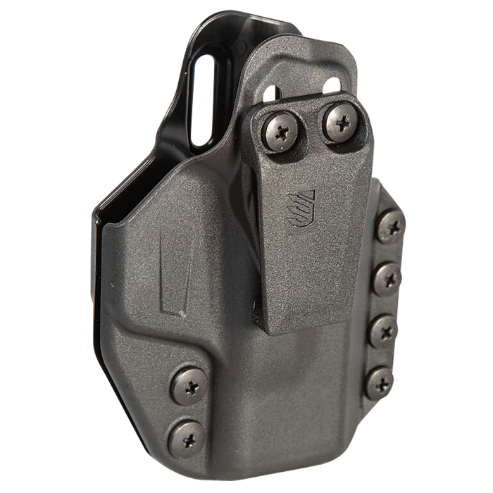 The Blackhawk Stache Base IWB Holster in sleek black polymer is designed for those who prioritize versatility and comfort in concealed carry. This ambidextrous holster caters to both right and left-handed users, ensuring easy access regardless of your dominant hand. Specifically crafted to fit the Sig P320, it promises a secure and snug fit for your firearm. The modular design allows for personalization, while the durable belt clip accommodates a belt size of up to 1.50 inches, making it a reliable choice for everyday use. Made in America, this holster blends innovation with practicality, providing a discreet and efficient carry solution.
