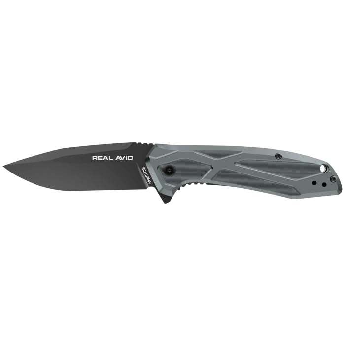 The Real Avid Rav2 Folding Knife stands out with its robust design and practical functionality. Crafted with a 3.25-inch drop point blade, it uses high-quality 8Cr13MoV stainless steel, coated with a sleek black oxide finish for enhanced durability and resistance to wear. The aluminum handle offers a lightweight yet sturdy grip, making it ideal for everyday use. This knife features a reliable liner lock mechanism and a spring-assisted opening, ensuring quick and secure access in critical moments. Perfect for outdoor enthusiasts and everyday carry, the Rav2 is engineered for those who value precision and performance.