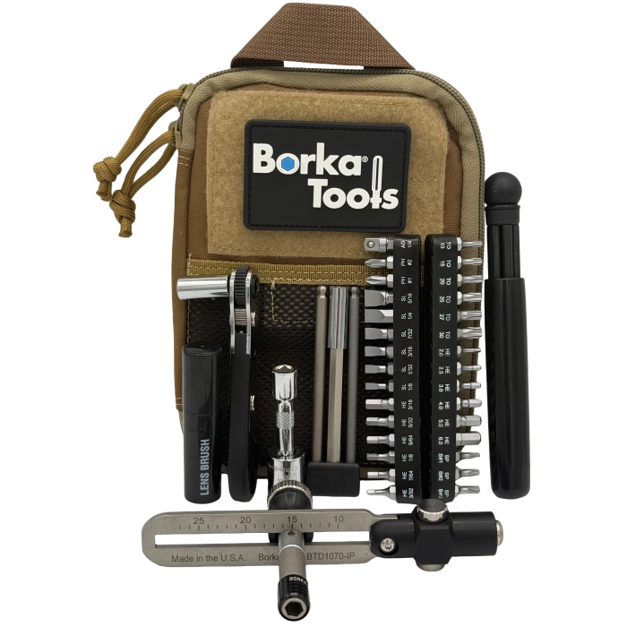 The Borka® Tools BTK-E5 is a field-ready adjustable torque driver kit built around the BTD1070-IP driver and a compact ratchet/adapter system for precise firearm and optics work. It combines the full Extended Configuration (BTK-E1) contents with a modular Emergency Cleaning Rod (ECR) designed for quick bore maintenance and obstruction removal in the field. Packed into a rugged Cordura® nylon pouch, it’s an all-in-one setup for mounting, maintenance, and emergency bore care at the range or on a hunt.