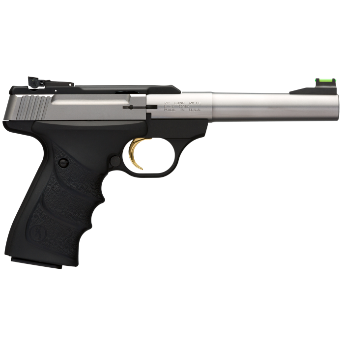The Browning Buck Mark Camper is a reliable and precise .22 LR pistol designed for both novice shooters and seasoned enthusiasts. Featuring a 5.50-inch tapered bull barrel, it offers impressive accuracy, making it ideal for target practice or small game hunting. The aluminum alloy frame, finished in matte black, ensures a lightweight yet durable construction. The black Ultragrip RX grips provide a comfortable and secure hold. This single-action pistol includes a manual thumb safety for added security. The adjustable TruGlo fiber optic front sight paired with the Pro-Target rear sight allows for quick and easy target acquisition. Weighing in at 34 ounces, the Buck Mark Camper balances well, offering a smooth shooting experience with its 10+1 round capacity.