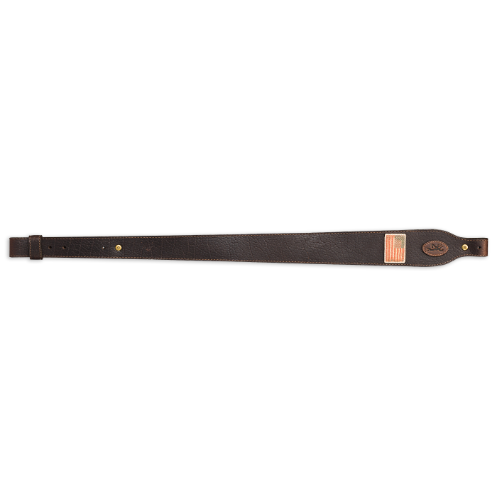Crafted with precision and patriotic flair, this dark brown leather rifle sling by Browning combines quality and style. Made in the USA, it features multi-grain leather construction with a durable suede backing and precise edge stitching. The unique design showcases an American flag applique, a signature Buckmark patch, and an antique-inspired finish. Adjustable from 25.50" to 28", it delivers both practical functionality and timeless appeal, making it the ultimate choice for any firearm enthusiast.