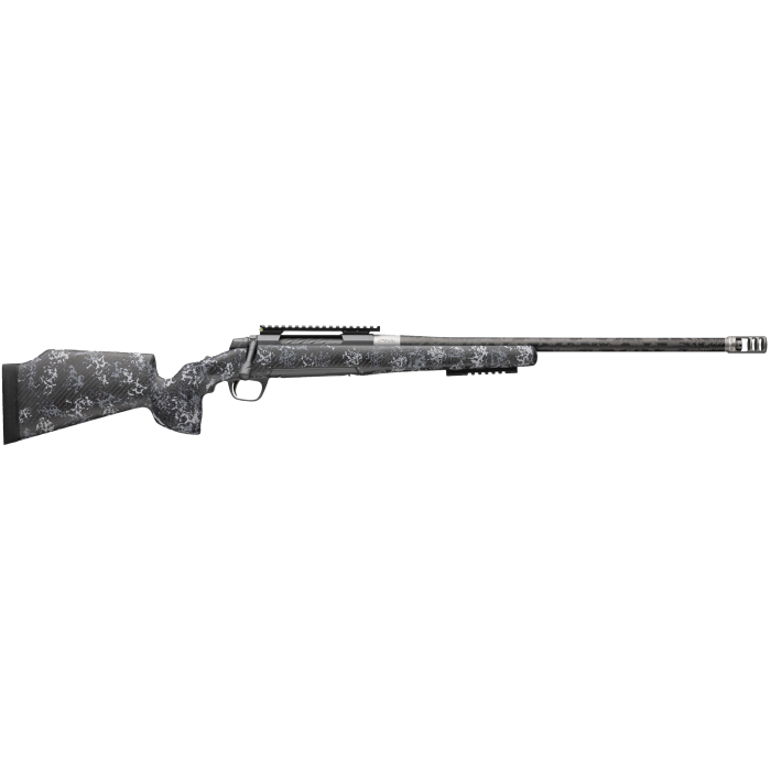 The X-Bolt 2 McMillan is a top-tier bolt-action big game hunting rifle optimized for use with an optional suppressor. Featuring a McMillan Game Warden 2.0 carbon fiber stock with accent graphics, this rifle boasts a Cerakote carbon gray finish on a stainless steel barrel and action. The lightweight carbon fiber wrapped stainless steel barrel includes a 5/8"-24 threaded muzzle, making it ideal for precision shooting. The redesigned receiver and spiral fluted bolt enhance reliability, while the DLX trigger system ensures a crisp, adjustable pull.