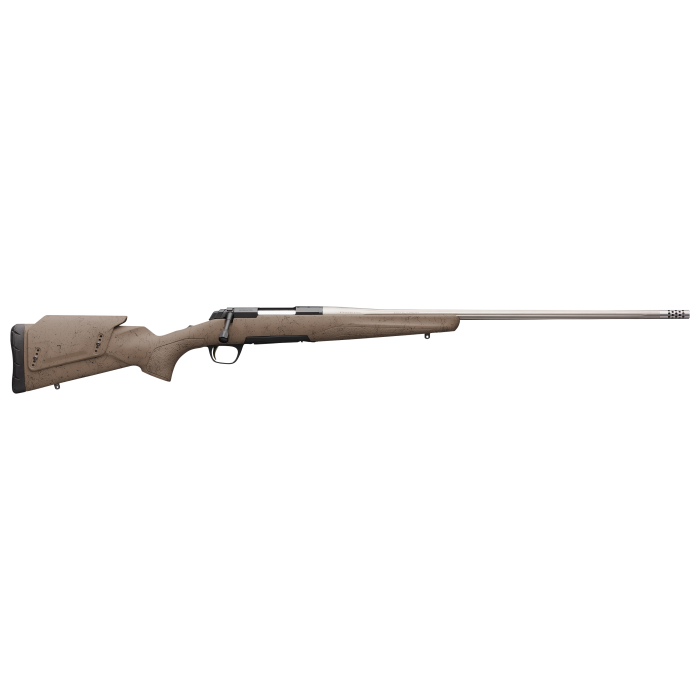 The Browning X-Bolt Western Hunter sets itself apart as a premier choice for those demanding precision and adaptability in the field. Its lightweight fiber-fusion stock incorporates an adjustable comb for optimum comfort and eye alignment, paired with an FDE Cerakote and matte metal finish for added durability in harsh conditions. The rifle’s free-floating, 26-inch barrel ensures consistent accuracy, with a recessed muzzle crown for protection, while the 1:8” twist rate is perfectly designed for the 300 PRC caliber. Browning's innovative three-lever Feather Trigger delivers a crisp break for enhanced control, and the bolstered safety features, including the top-tang safety and bolt unlock button, make handling secure and intuitive. Designed for performance, its Inflex recoil pad increases shooting comfort, and the 60-degree bolt lift allows for fast, smooth cycling when it matters most. Equipped with the X-Lock scope mount, the X-Bolt Western Hunter is ready to perform with reliability and precision that stands out from other firearms.