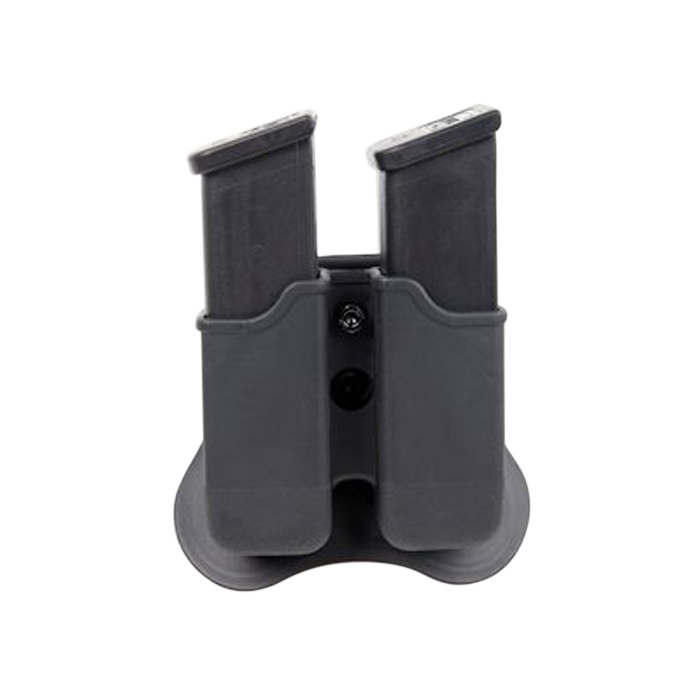 This black polymer magazine holder is crafted for optimal performance and comfort, specifically designed for Glock models 17, 19, 22, 23, 26, 27, 31, 32, 33, and 34 Gen 1-4. Its ambidextrous design accommodates both left and right-handed users, making it highly versatile. The holder features a durable paddle mount with a silicone lining, ensuring a snug and comfortable fit against your body. With a capacity to hold two magazines, this magazine holder is ideal for those seeking convenience and reliability. Its plain finish and high-quality construction make it a practical choice for handgun enthusiasts.
