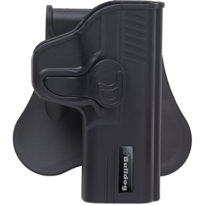 Bulldog's rapid release holster is suitable for civilian, duty and military use.The holster is made of durable, high-tech polymer material with gun-specific design that is fully adjustable to multiple draw positions.Its specially designed locking mechanism provides safe and secure "level ii" retention while offering a one finger "quick draw" release.