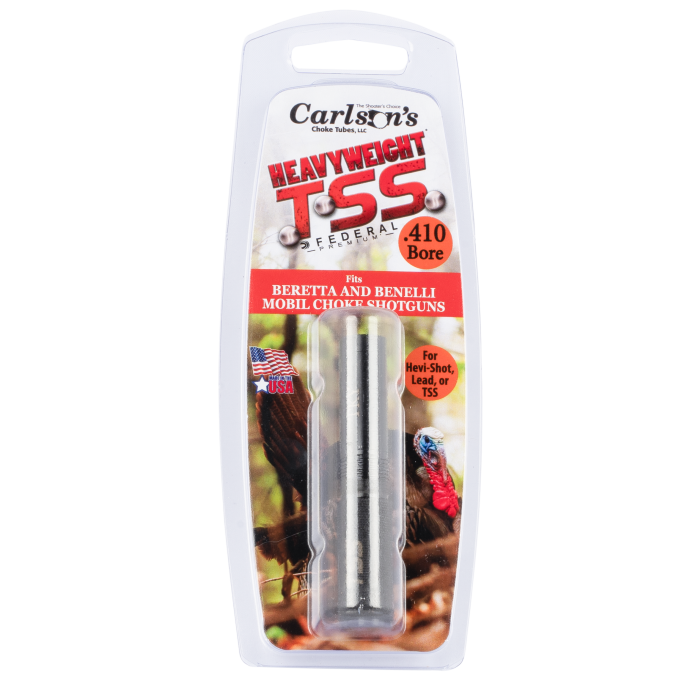 Enhance your turkey hunting experience with the Carlson's Black Steel Turkey Choke Tube, designed specifically for the .410 gauge. This choke tube is crafted from durable steel with a sleek black finish, ensuring both reliability and style. Optimized for Federal Premium Heavyweight TSS Turkey Loads, it also performs exceptionally well with a variety of other turkey ammunition. The innovative design accommodates smaller shot sizes, such as 7 and 9, maximizing pellet density within a 10-inch circle at 40 yards. Compatible with Benelli and Beretta configurations, this singular choke tube offers a specialized constriction for turkey hunting, delivering outstanding long-range performance. Perfect for hunters looking to gain an edge with unmatched precision and efficacy.