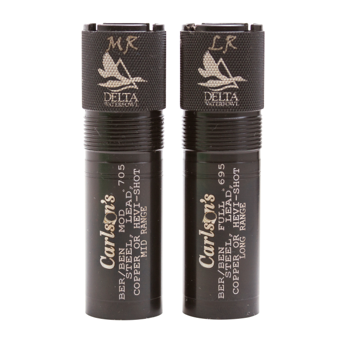 Enhance your shooting precision with Carlsons 12GA Mid-Long Range Choke Tubes for Beretta Mobil. Crafted from durable 17-4 stainless steel, these choke tubes are engineered to deliver tighter, denser patterns for improved accuracy. Featuring an extended 25% longer parallel section, they ensure consistent performance with every shot. The knurled ends allow for effortless removal, and laser markings provide easy identification of constriction and size. Ideal for use with steel shot, these tubes are perfect for hunters seeking reliable mid-range performance. Available in a sleek black finish, this pair of choke tubes offers quality and consistency for your shooting needs.