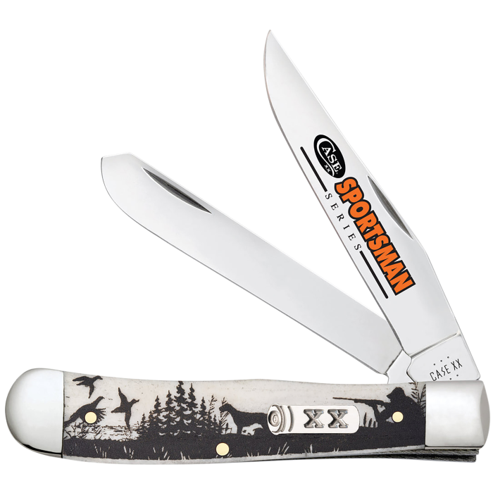 The Case Trapper Sportsman Knife Bird Dog Hunter in Natural Bone is a finely crafted tool designed for outdoor enthusiasts. This knife features two full-length blades, a slender Clip Point and a long Spey, making it ideal for trapping and skinning small game. Weighing just 4 ounces and with a closed length of 4.13 inches, it offers a perfect balance of portability and functionality. The blades are made from Case Tru-Sharp stainless steel, known for its high carbon content, which ensures the blades maintain their edge longer and resist corrosion. The handle is beautifully embellished with a bird dog hunter motif, celebrating the spirit of the outdoors and providing each knife with a unique narrative. The knife opens with a nail nick, adding a touch of traditional charm to its modern utility. This combination of features makes it an essential tool for any outdoor sportsman or woman.