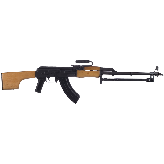 The AES 10B is a semiautomatic rifle chambered in 7.62x39mm, known as the "big brother" to the standard AK. These robust and durable rifles are produced in Romania and are available in limited quantities. The AES 10B stays true to the original design, featuring a heavy barrel that maintains accuracy over sustained periods of fire, an RPK-style adjustable bipod, and an RPK-style clubfoot stock.