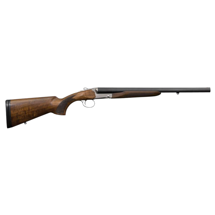 Introducing a finely crafted firearm that seamlessly blends traditional aesthetics with modern functionality. This side-by-side shotgun boasts a sleek blued metal finish that perfectly complements the rich walnut stock material. Designed with the avid hunter in mind, this 12-gauge shotgun features an overall length of 37.50 inches and a 20-inch barrel, ensuring both maneuverability and precision in the field. The wood-colored field stock style provides a classic look, while the inclusion of a recoil pad ensures comfort during extended use.