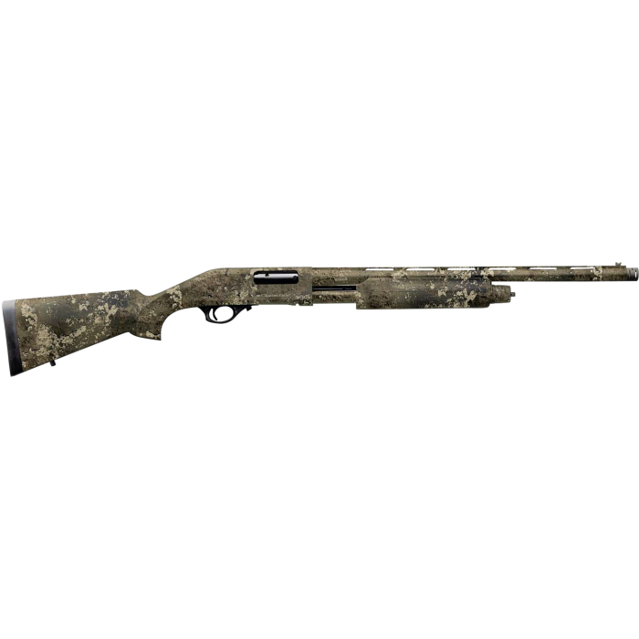 Experience the versatility and reliability of this 20-gauge pump-action shotgun, designed for the discerning shooter. Weighing in at just 6.5 lbs, it offers a manageable heft for extended use in the field. The 22-inch vent rib barrel is crafted for precision, and the natural camouflage finish ensures you remain concealed in various environments. With a fixed stock and a 5+1 capacity, this firearm combines practicality with performance. The shotgun features a single-stage trigger and a grooved receiver for enhanced control. Its 3-inch chamber, along with a set of Beretta/Benelli Mobil chokes—Full, Improved Cylinder, and Modified—provides adaptability for different shooting scenarios. Whether you're hunting or target shooting, this shotgun is engineered to meet your needs with reliability and ease.
