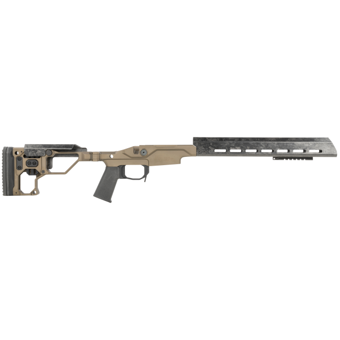 The Christensen Arms Modern Precision Rifle Chassis in Desert Brown offers a unique blend of ultralight construction and advanced adjustability, making it a top choice for precision shooting enthusiasts. Built from durable 7075 billet aluminum and enhanced with carbon fiber components, this chassis system integrates Magnelock Technology for secure assembly. The 14-inch FFT carbon fiber handguard is designed with MLok compatibility, providing versatile accessory attachment options. With a length of pull adjustable from 12.50" to 14.50" and an ergonomic pistol grip that includes a storage compartment, this chassis is ideal for customizing your next precision rifle project. Elevate your shooting experience with this meticulously engineered and versatile chassis system.