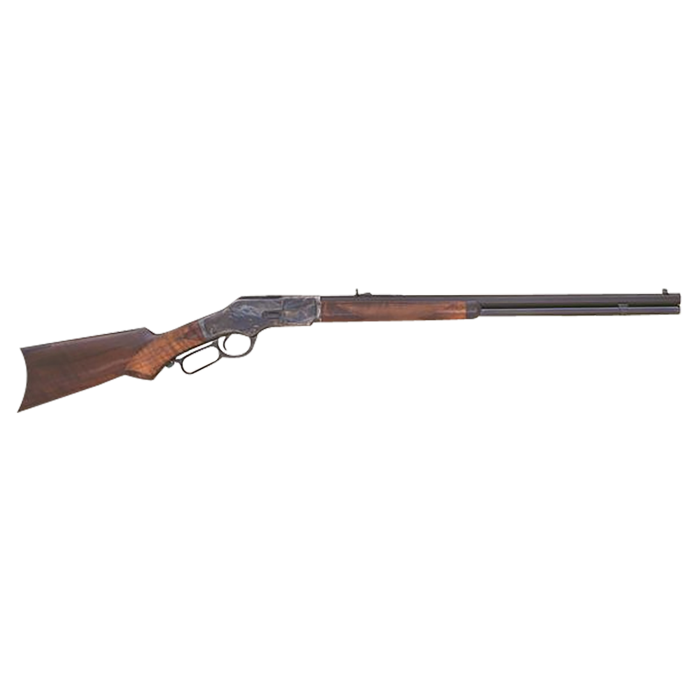 The Cimarron 1873 Sporting Rifle has been a frontier favorite since its debut, embodying the spirit of the Old West with modern precision. This slab-sided saddle rifle features a straight walnut stock and a color case hardened receiver finish, offering a blend of classic aesthetics and robust performance. Designed for right-handed shooters, the rifle boasts a fixed pistol grip stock for enhanced stability and control.