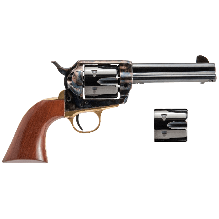 Built with meticulous attention to detail, this single-action revolver features a brass backstrap and trigger guard, a blued barrel and cylinder, and a color case-hardened steel frame.